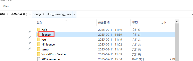 3. 、将工具包里面的 SECURE_BOOT_SET 拷贝到 USB_Burning_Tool 安装的目录下的 license 目录(如果工具安装完成后,安装目录下没有 license 目录,自行创建一个即可),如下: